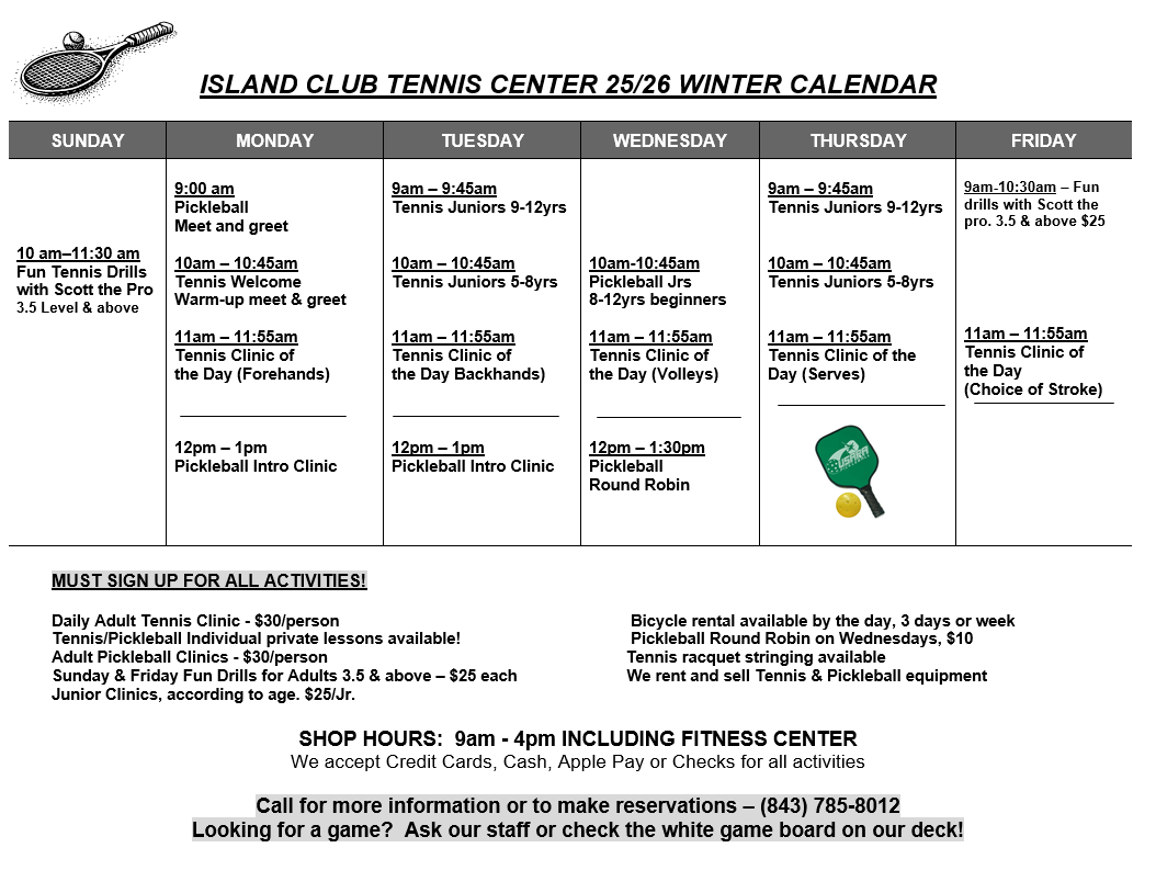 Welcome to beautiful Hilton Head Island and to the Island Club Tennis, Pickleball, and Fitness Center!